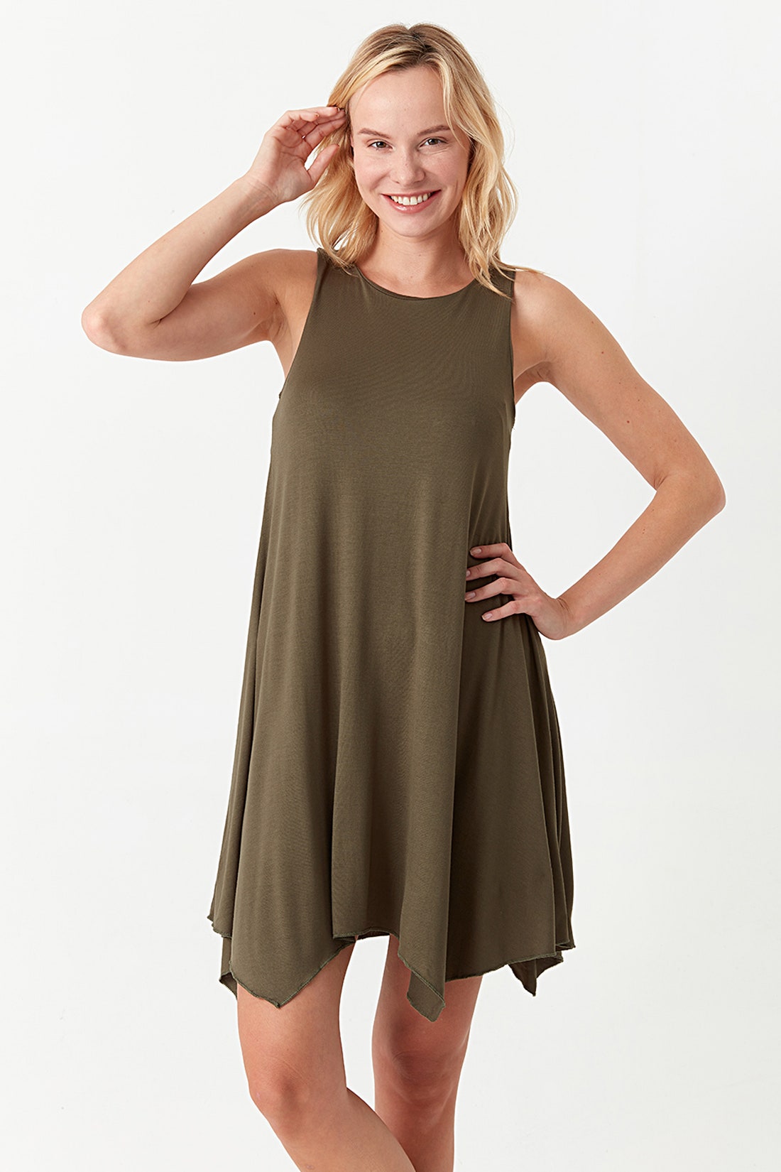 Khaki Sleeveless Hankerchief Bodycon Dress
