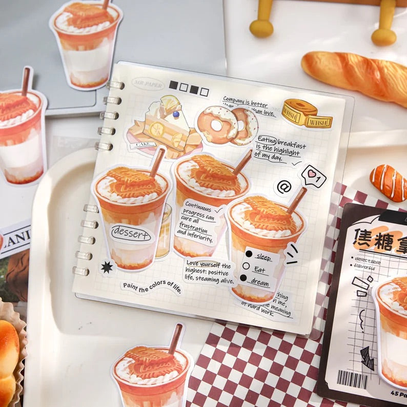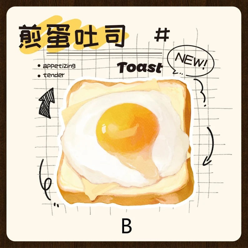Featuring a croissant, pancakes, pudding, biscoff latte, coffee and eggs on toast; these super cute sticky notes will transport you from your desk to a warm cozy bakery!