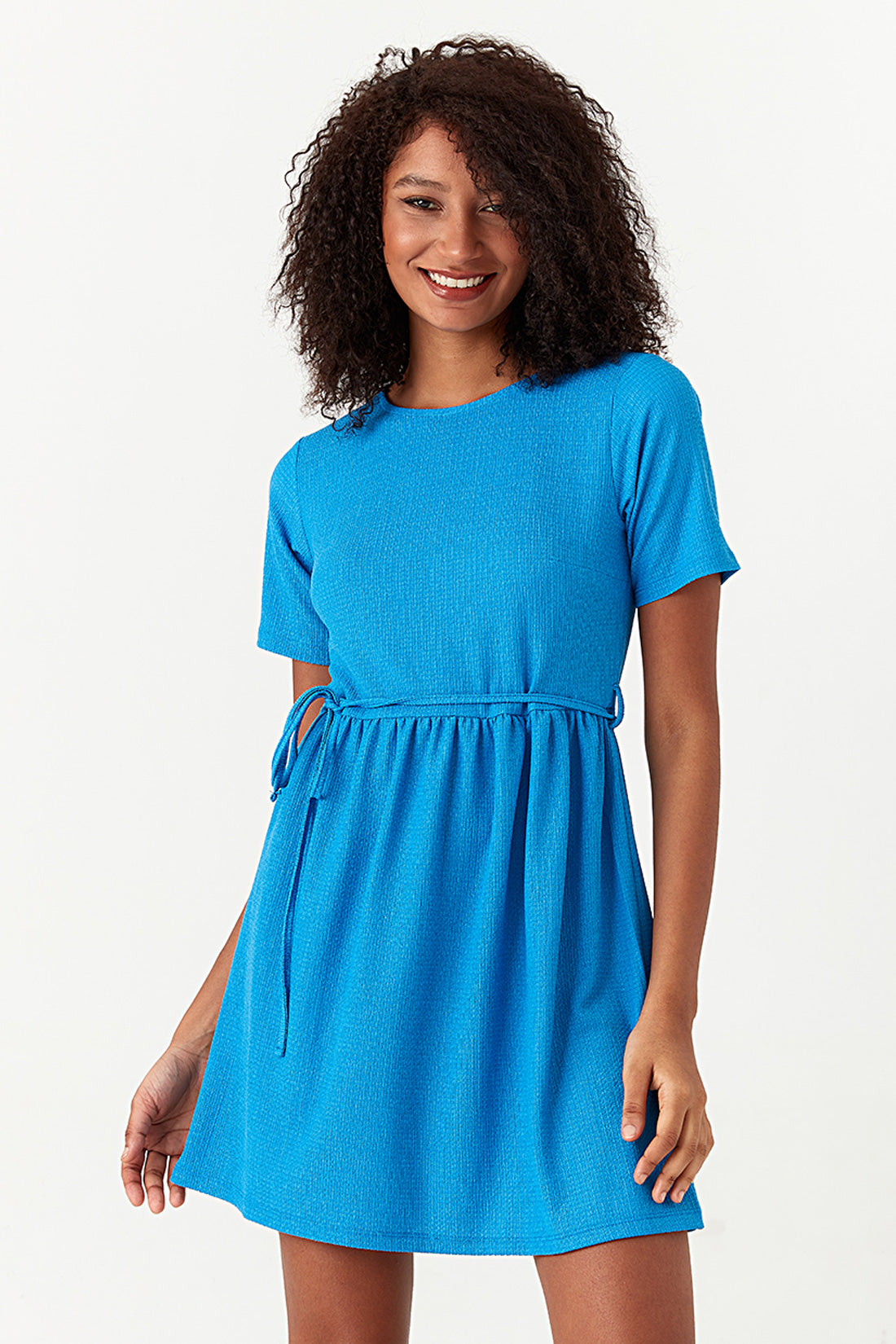 The Blue Textured Belted T-Shirt Dress is the definition of easy, everyday style. Made from soft textured fabric, this short sleeve t-shirt dress features a relaxed silhouette with a cinched waist belt to flatter your figure. The vibrant blue shade adds a playful pop of colour, while the effortless design makes it ideal for day plans, casual outings or off-duty dressing. Pair it with trainers or sandals for a comfy yet polished look you’ll wear on repeat.