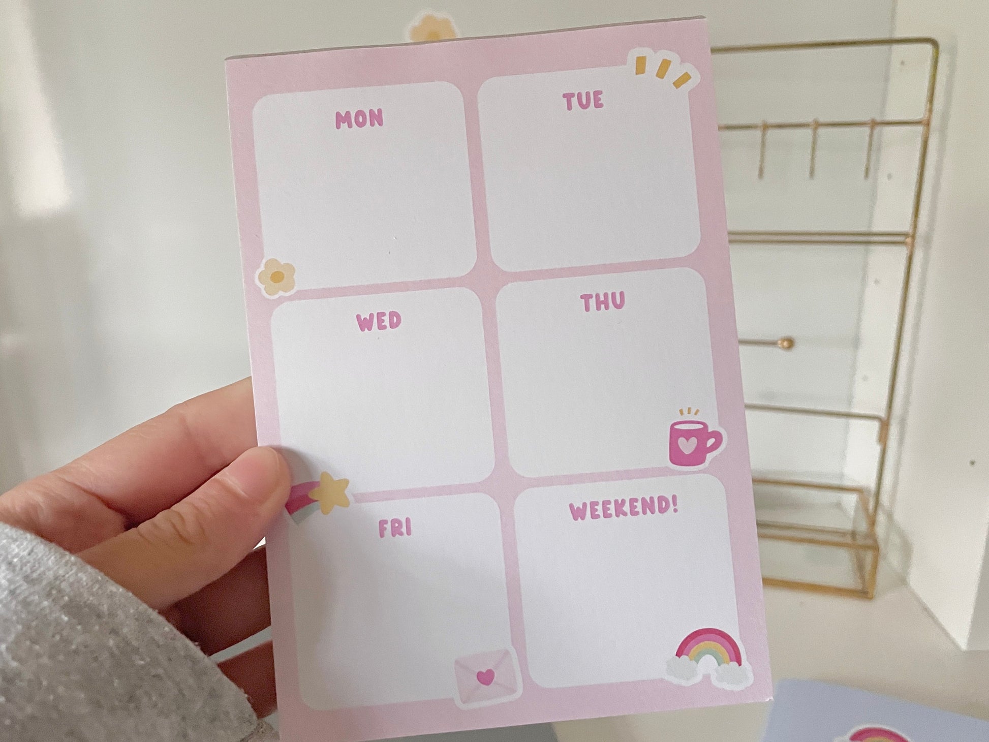 This super cute weekly planner is perfect for keeping on your desk to keep track of your weekly schedule and to-do's.