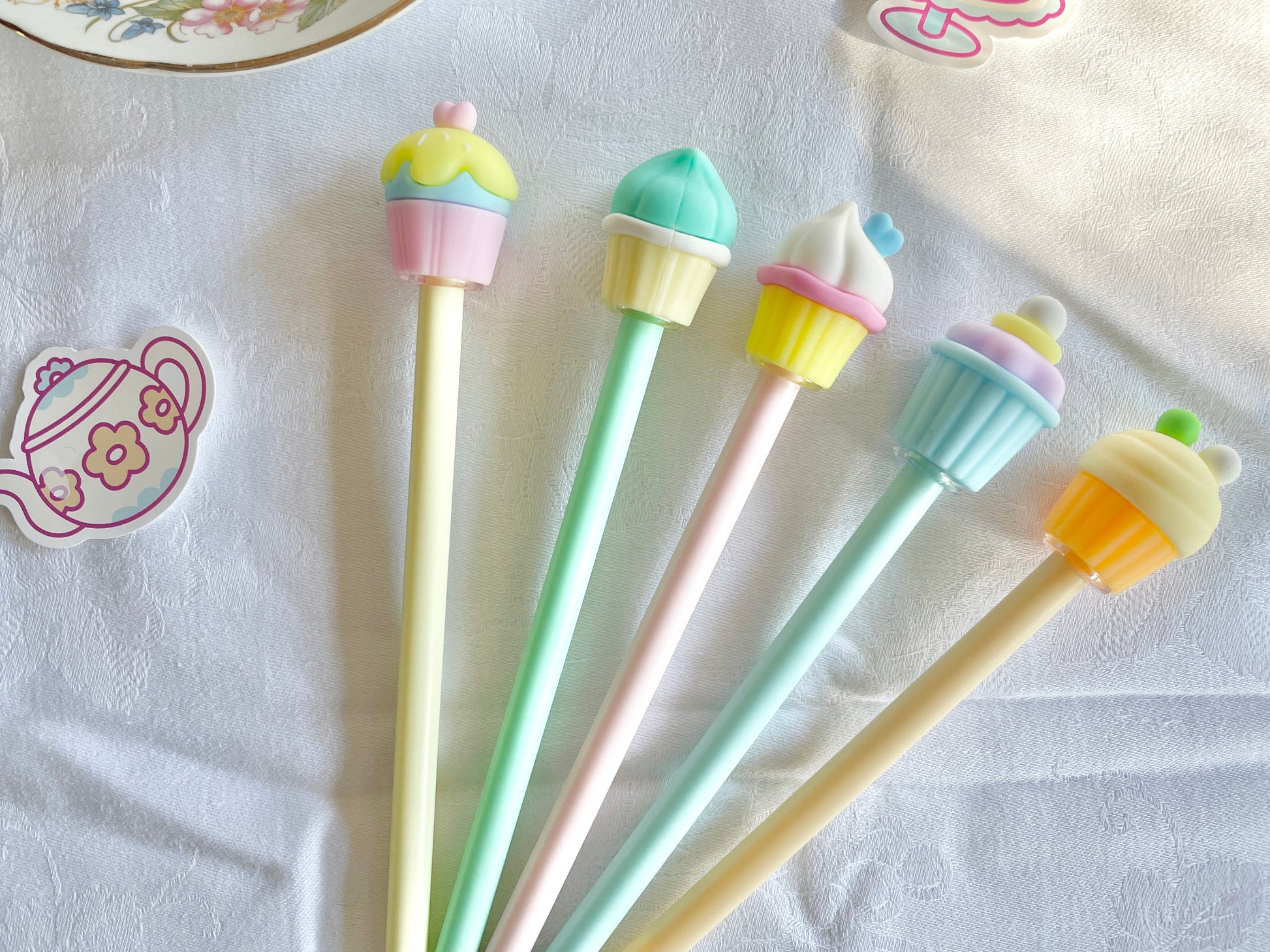 These super cute gel pens each feature an adorable cupcake shaped lid