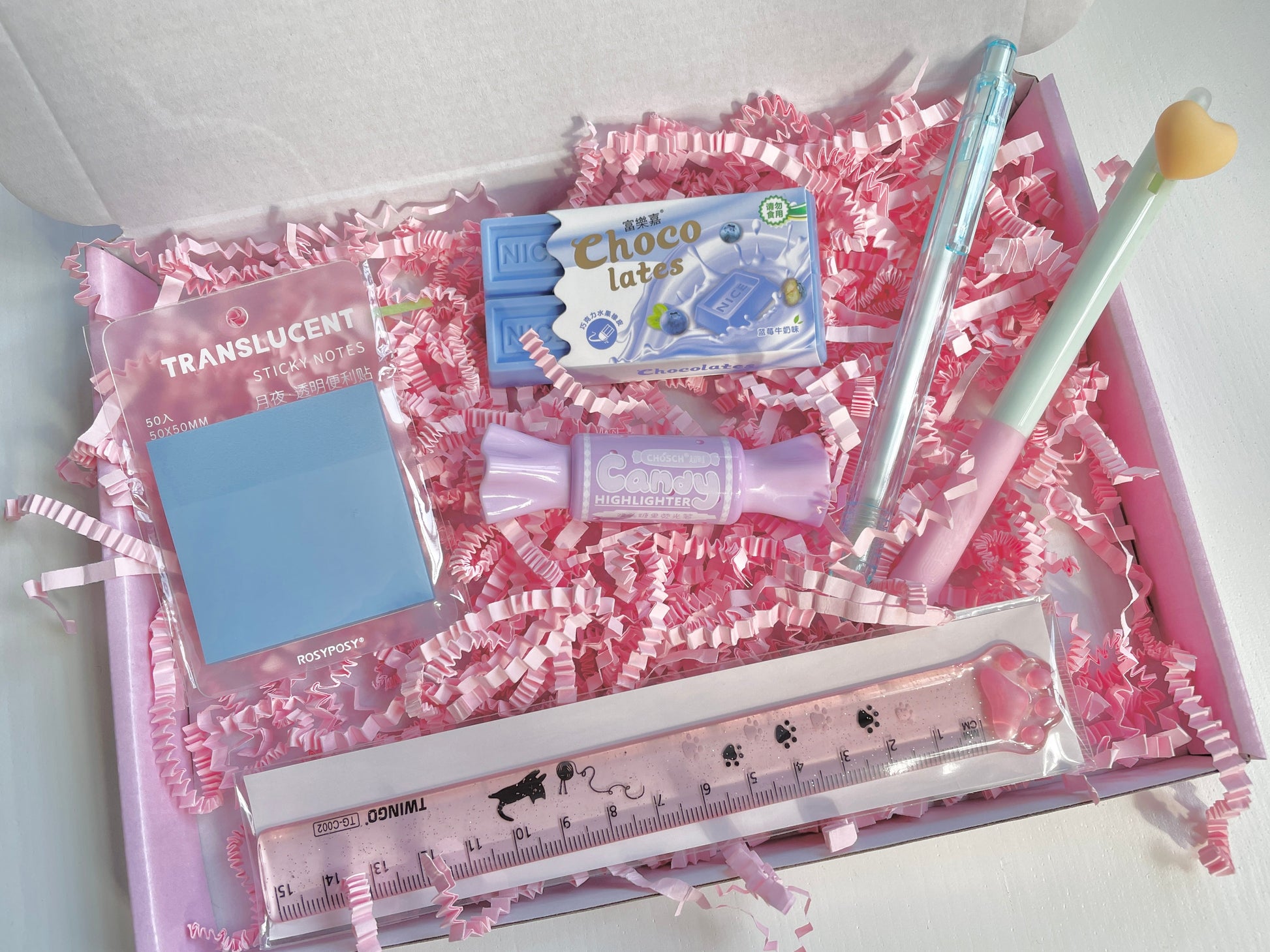 Inside the letter box sized box, you will find 6 cute stationery items that are essential for any exam or revision session.