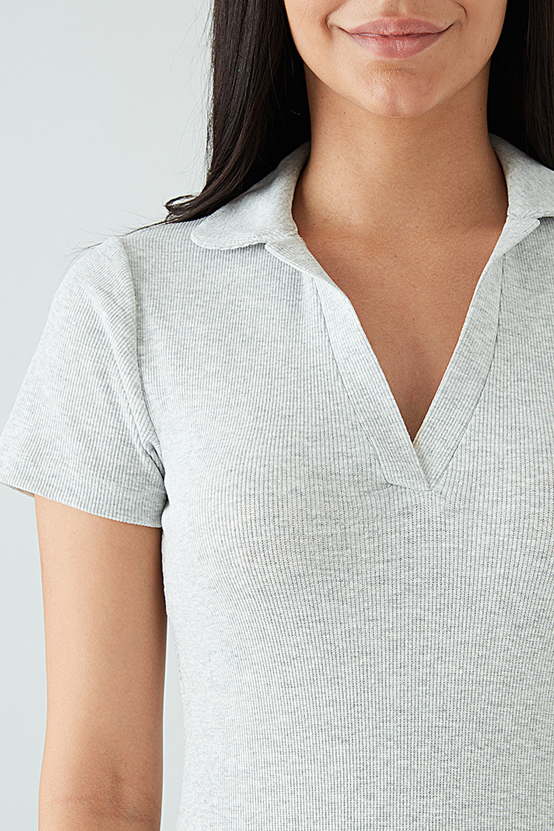 Grey Collar Detail Rib Midi Bodycon Dress