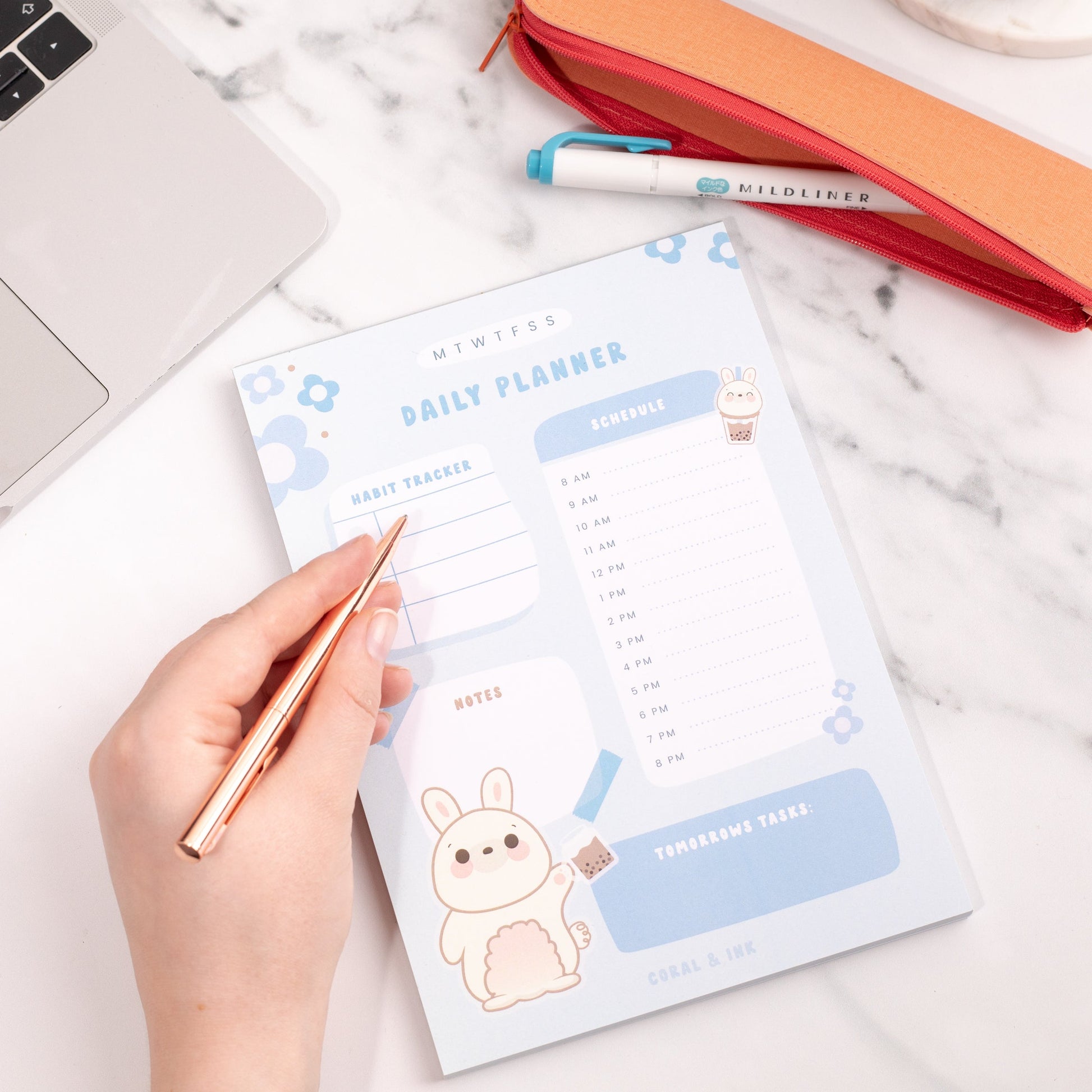 - A5 bunny milk tea daily planner (features a habit tracker, daily schedule, notes section and space to write the tasks for tomorrow)