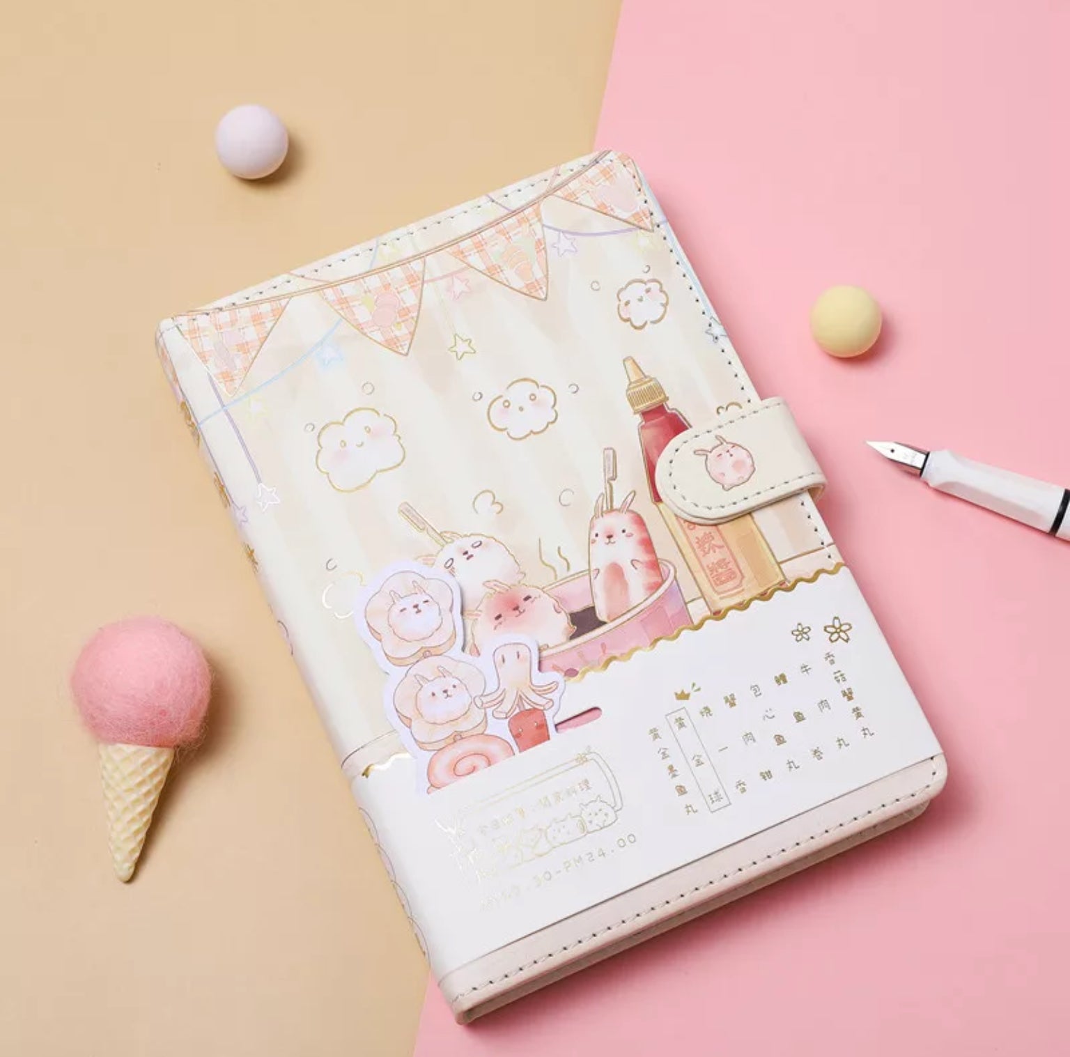 Each journal has an adorable sushi bunny soft cover with gold embossed details.