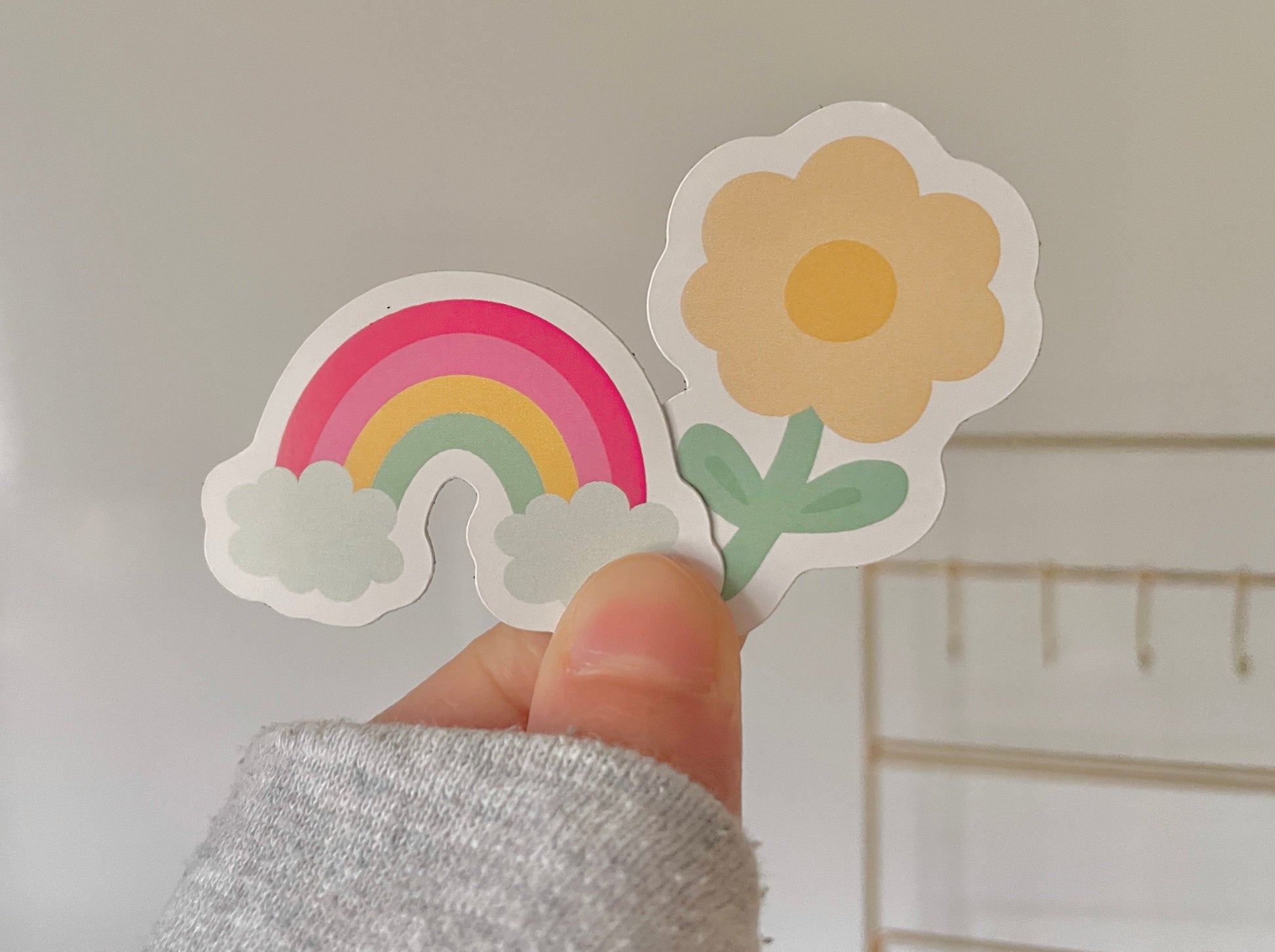 2 magnets are included in each set, a super cute little daisy flower and a pastel rainbow!