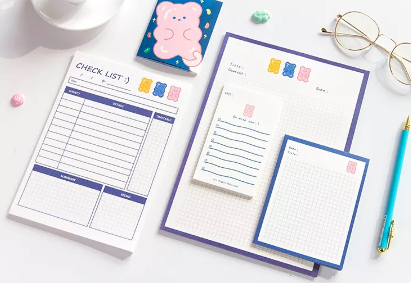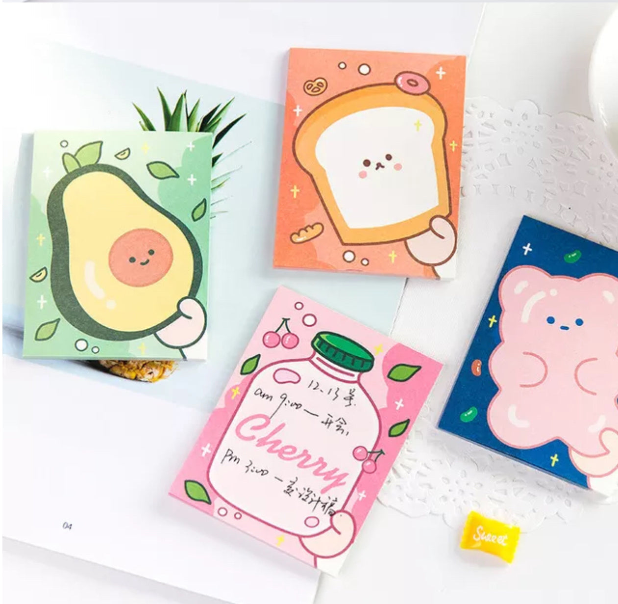 Choose from 4 options for each memo pad including; gummy bears, bread, avocados, and cherry soda. Each style is super adorable and the perfect companion for study and note taking or journaling and scrapbooking.