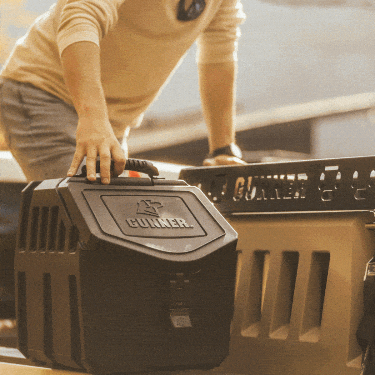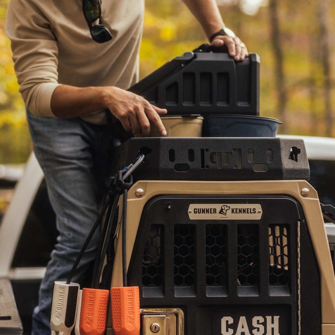 Introducing our patent-pending kennel storage system, designed with our friends at Quack Rack to make the most of your truck bed real estate. With over 80 securement points, the GUNNER Kennel Rack ensures you can secure essentials like Food Crates, dog bowls, gear and more.