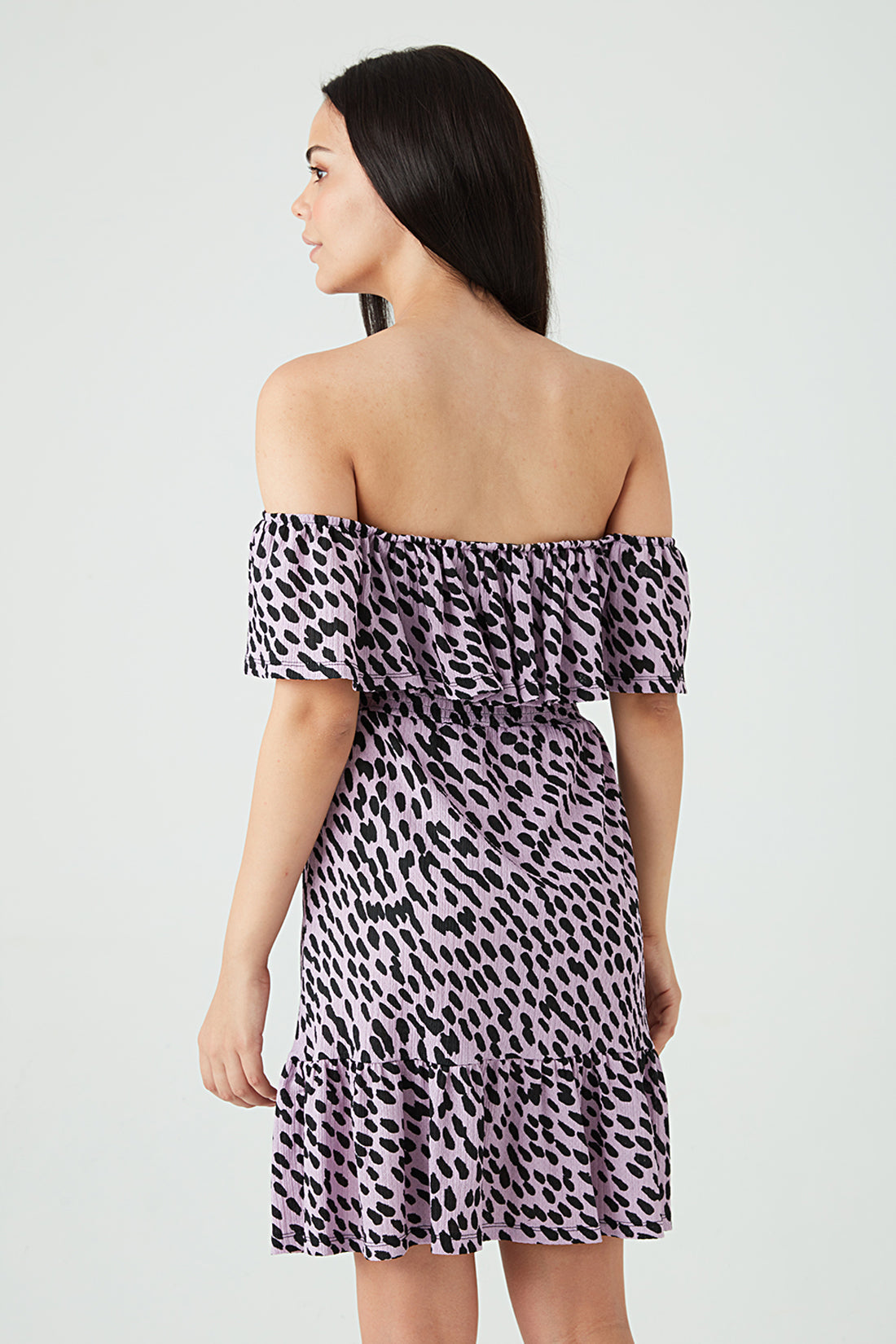 Bring a fresh feel to your everyday looks with the Lilac Spot Print Bardot Tea Dress. Designed with a flattering Bardot neckline and all-over spot print, this dress is an easy choice for warm-weather plans. The soft lilac shade adds a playful, feminine touch, while the floaty silhouette keeps it comfortable from morning to evening. Pair it with sandals or white trainers for an effortlessly put-together outfit.