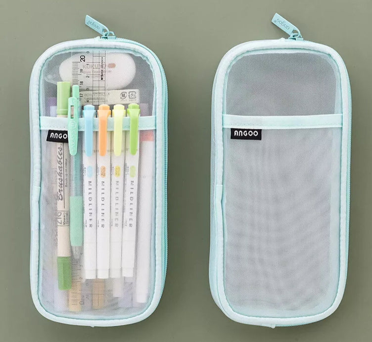 Our large capacity mesh pencil case has a large zipper compartment that has room to hold all your important stationery, as well as a front pocket that you can use to slot all your most used pens in.