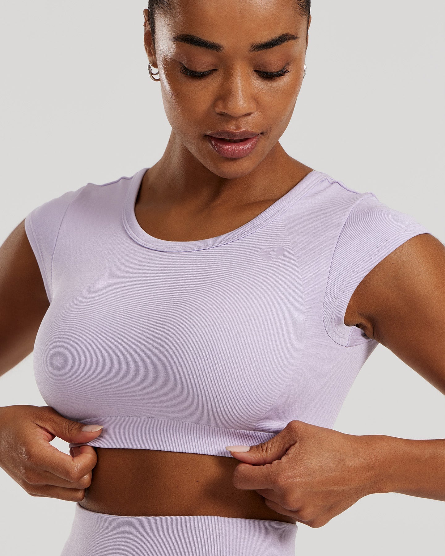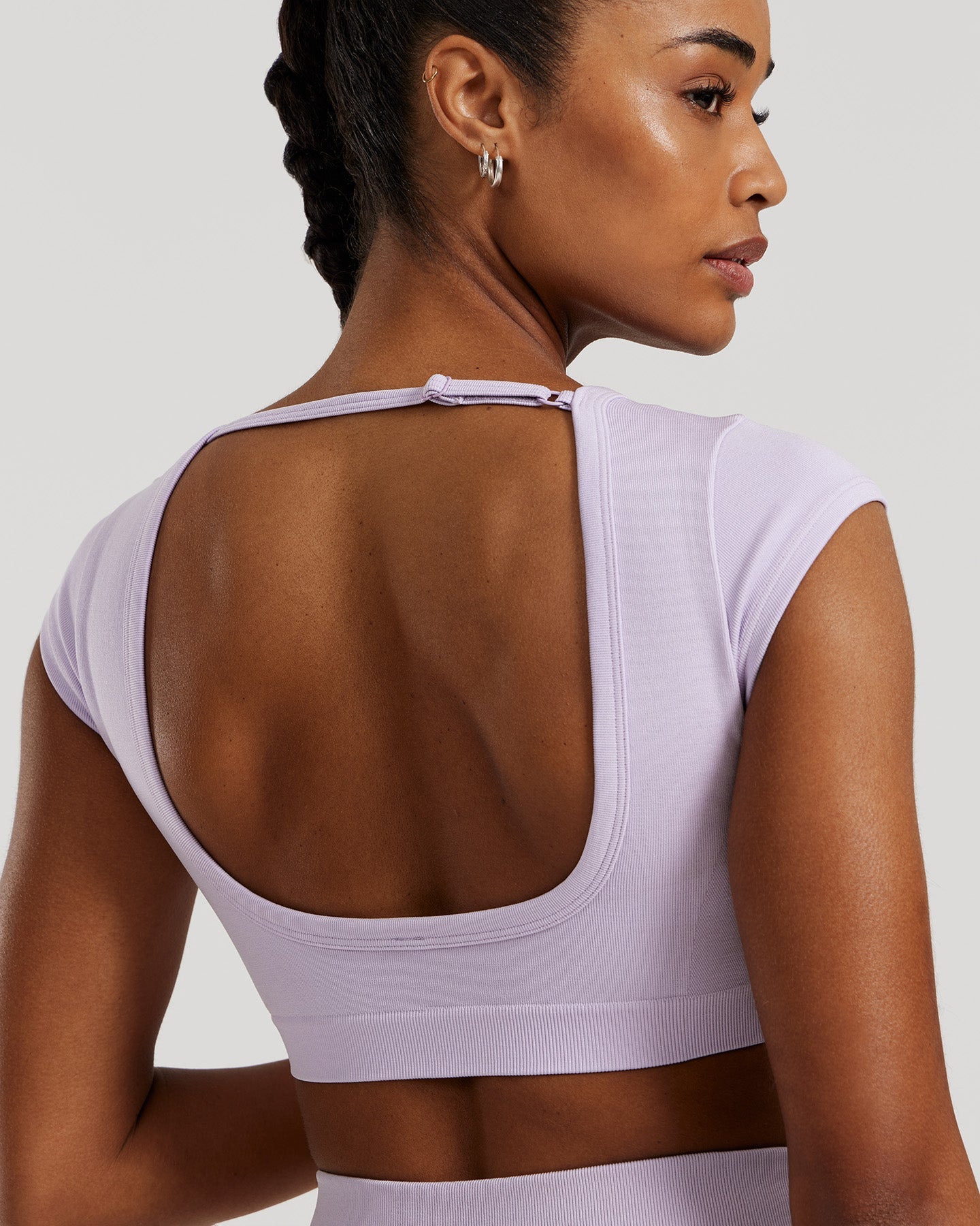 Motion Seamless Open Back Short Sleeve Crop Top | Cool Lilac