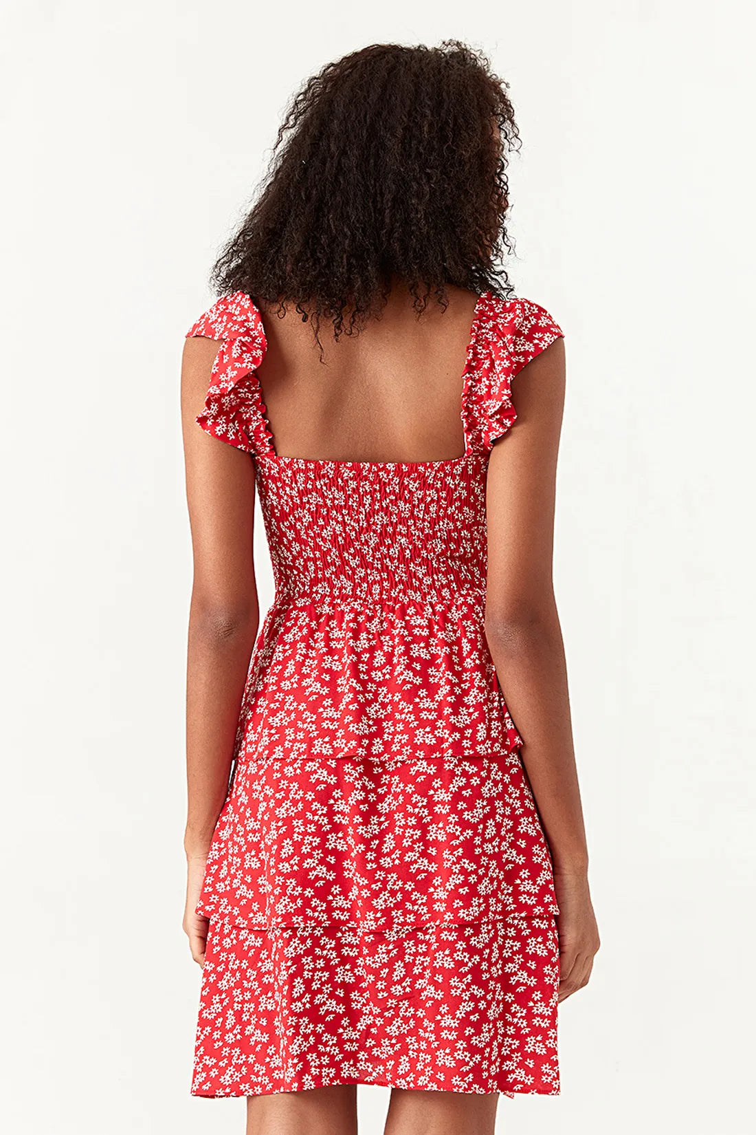 Add a touch of feminine charm to your wardrobe with the Red Frill Strap Shirred Detail Dress. Designed with a flattering shirred bodice and soft frill shoulder straps, this dress hugs the waist and flows into a tiered mini skirt for an effortlessly cute finish. The lightweight fabric and playful silhouette make it ideal for warm days, whether you're heading out for brunch, a picnic, or a weekend getaway. Style it with sandals or trainers for an easy, everyday look.