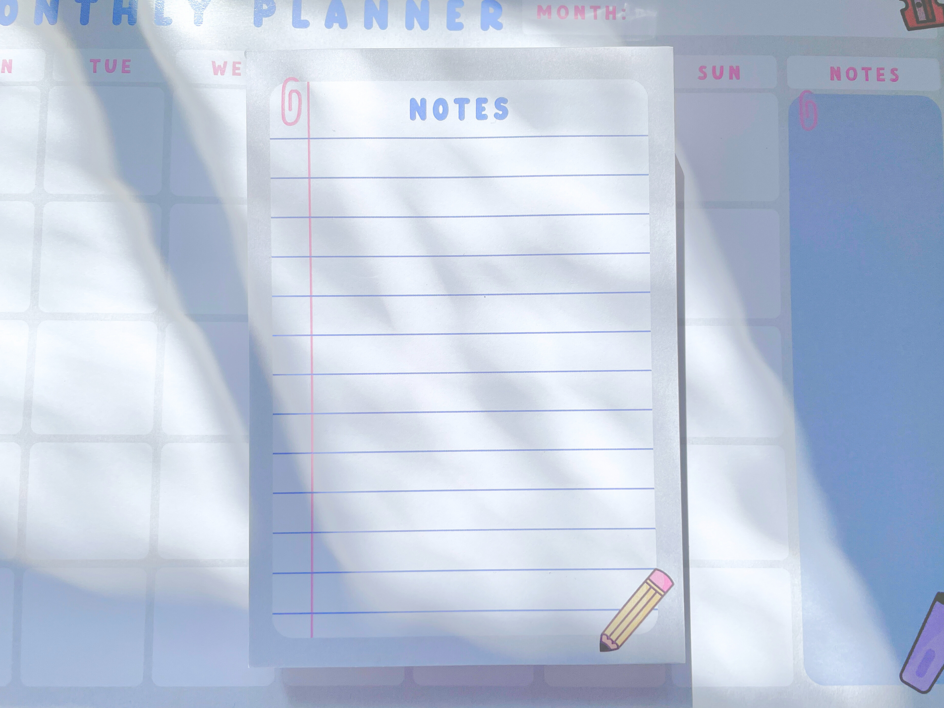 A6 Notes Memo Pad: This super cute memo pad features a school lined paper style design with a mini pencil at the bottom. Perfect for taking notes or listing your to-dos.