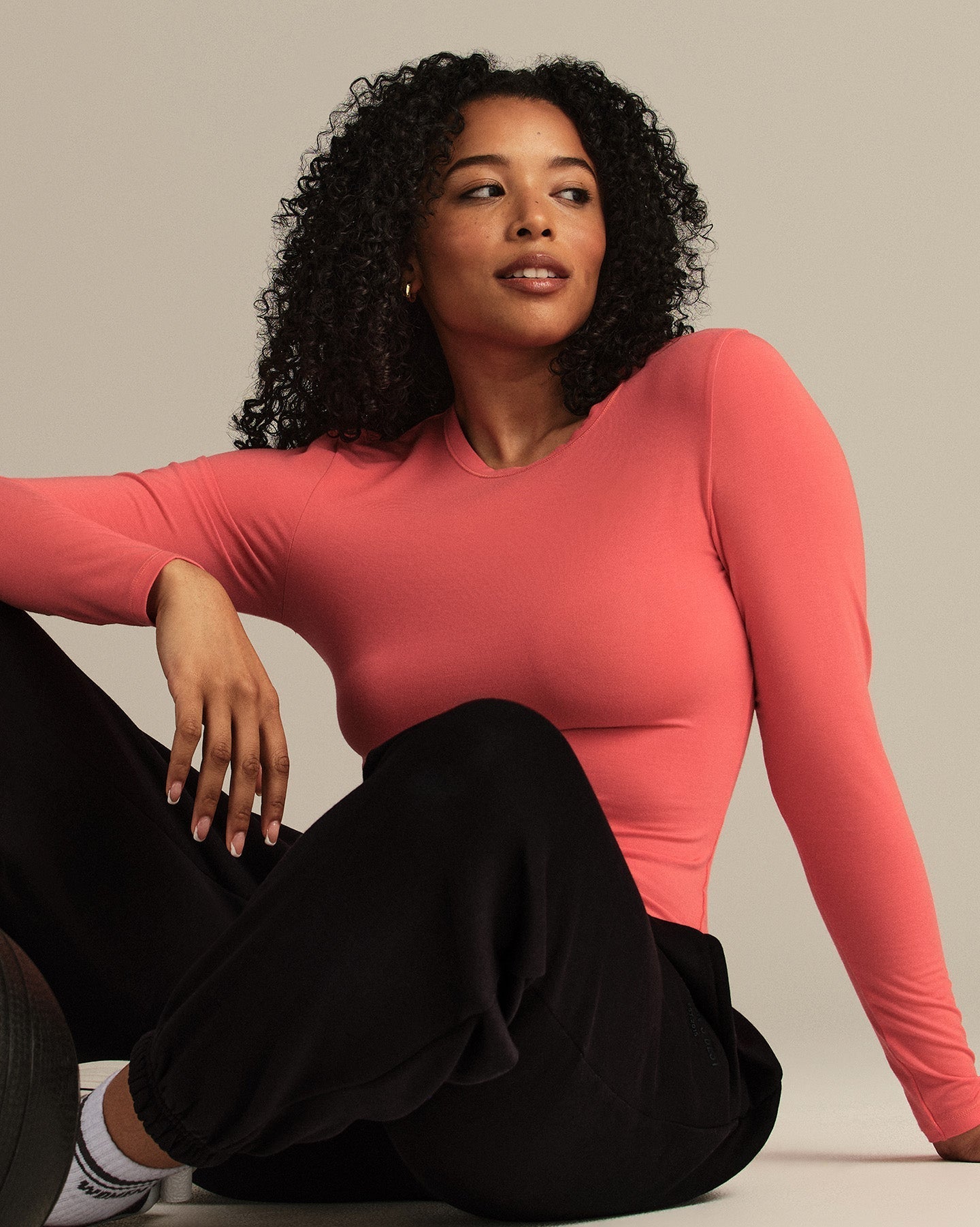Smooth Contour Midi Crew Neck Long Sleeve T-Shirt | Sunlit Coral