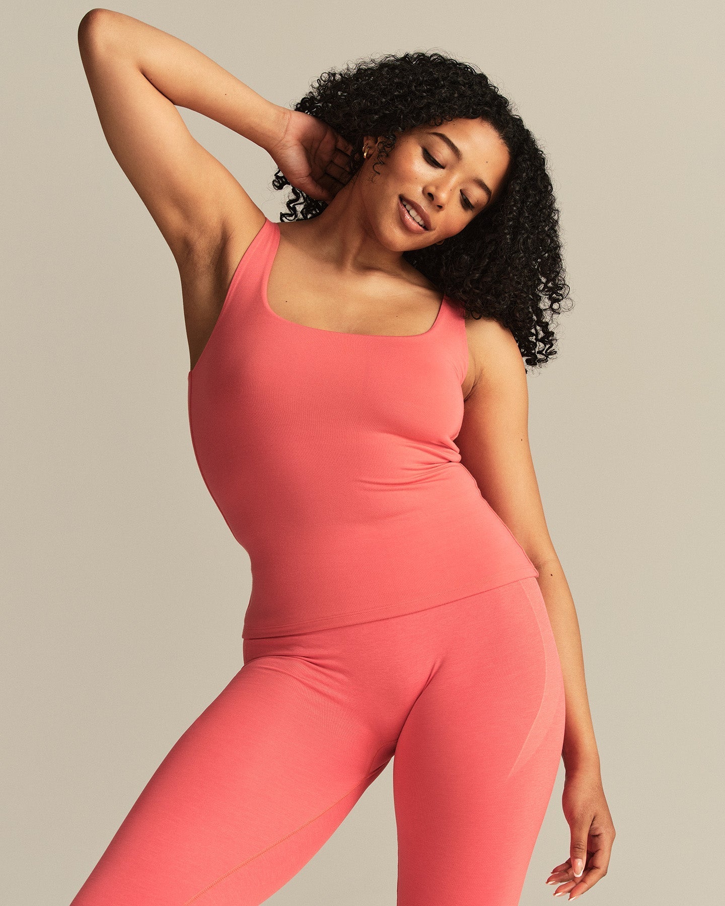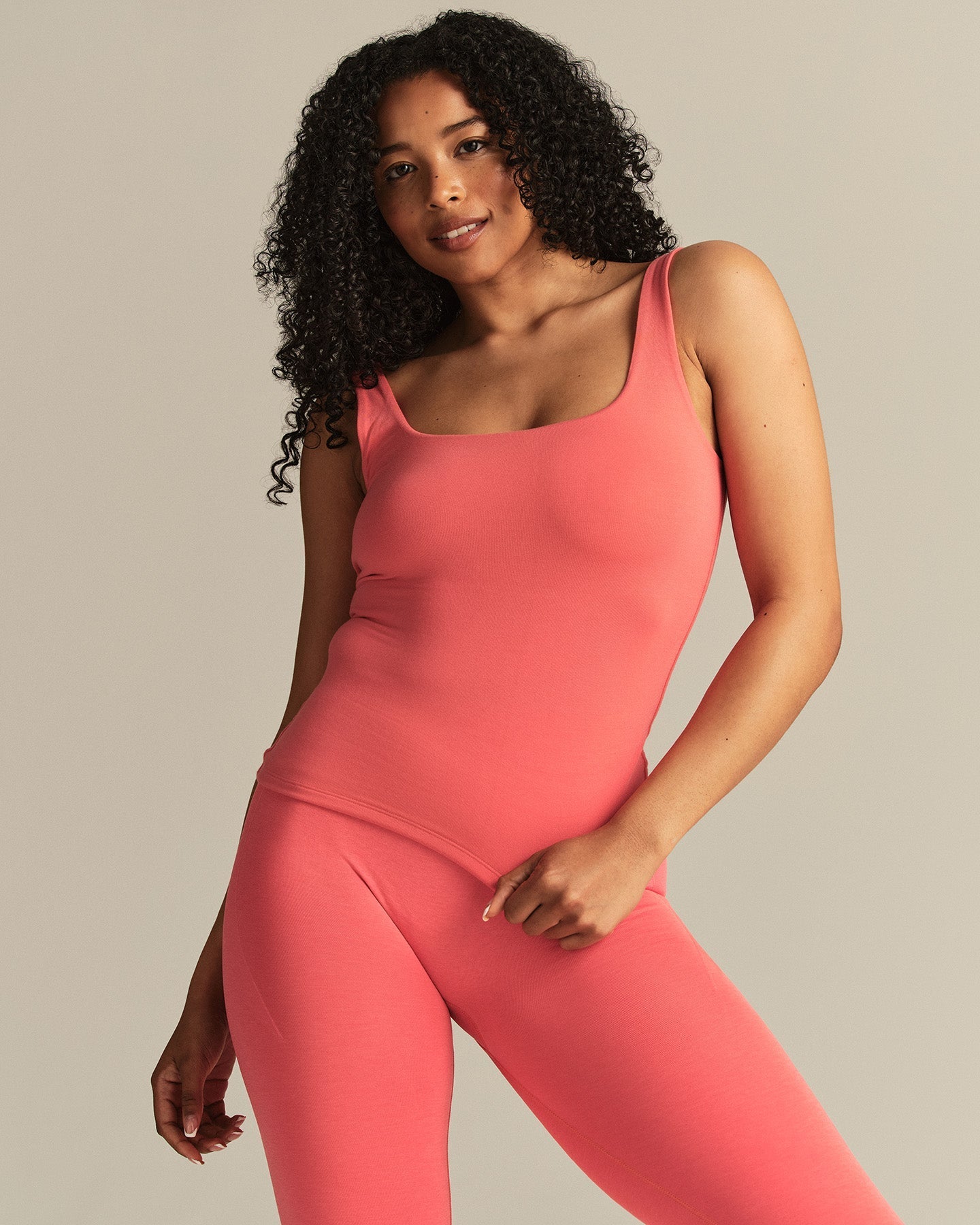 Smooth Contour Midi Square Neck Tank | Sunlit Coral