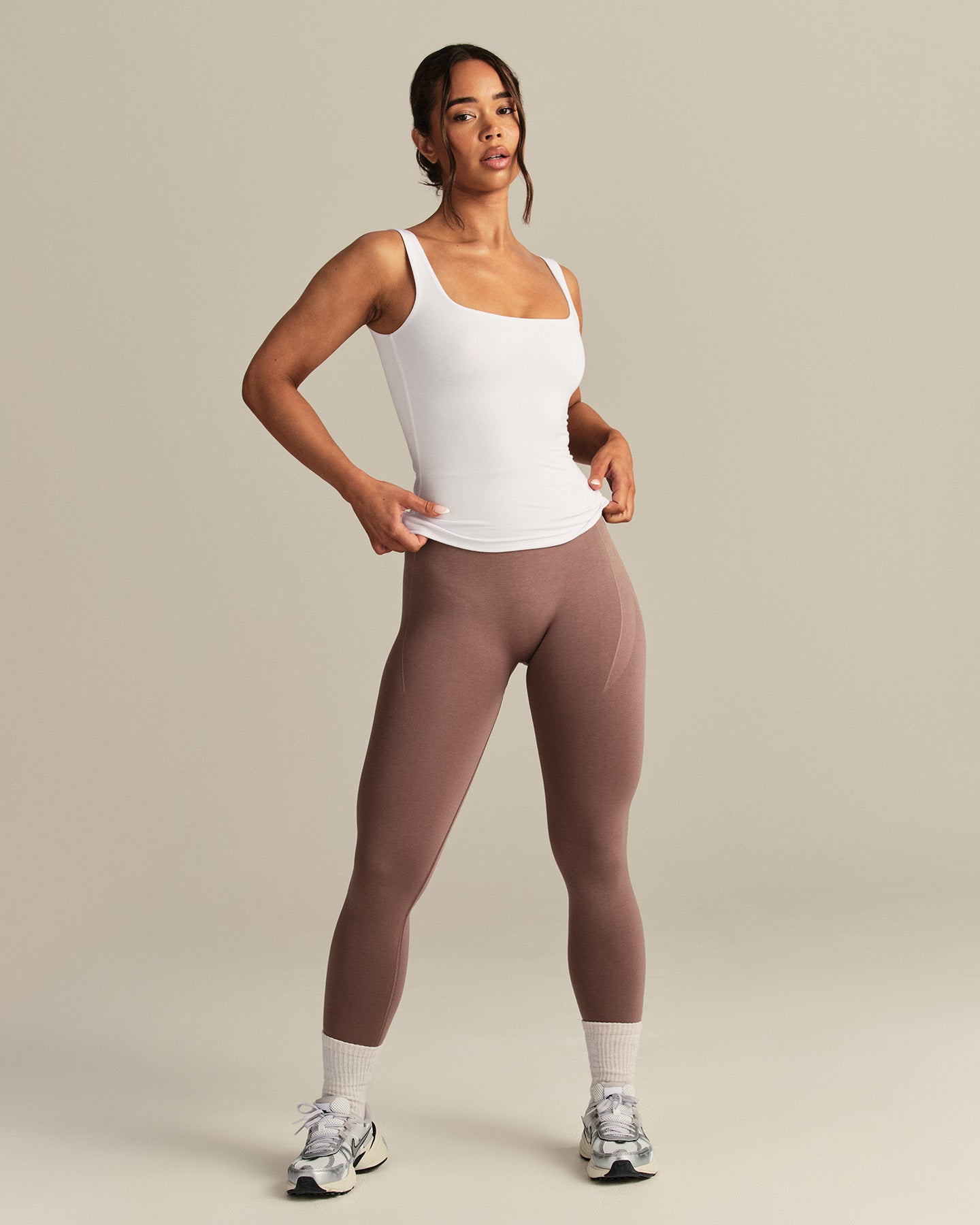 Smooth Contour Midi Square Neck Tank | White