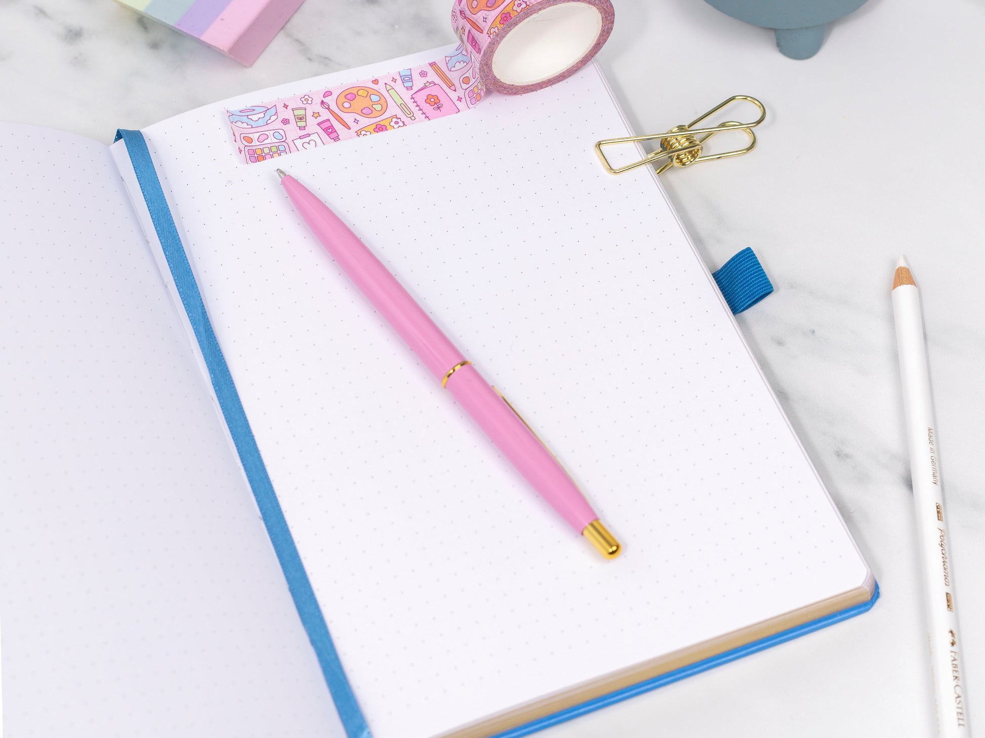 Filled with 160 pages of the highest quality bright white 160gsm 6mm dot grid paper, they were crafted for use of markers and pens. The thick paper is resistant to bleeding, rough erasing and shading.