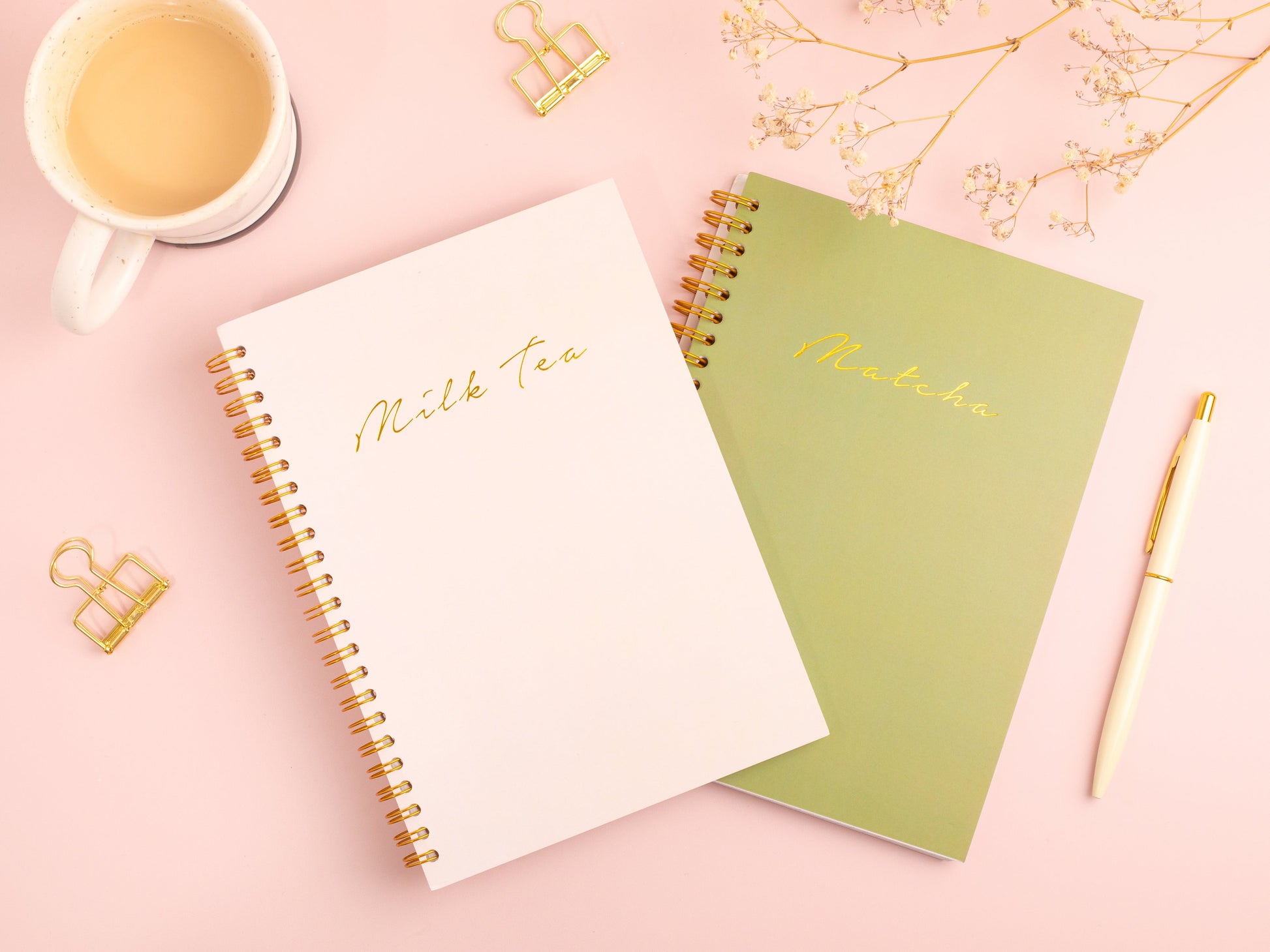 Our super adorable and aesthetic Milk Tea and Matcha Notebooks are perfect for a daily notebook for you to jot down all your thoughts and ideas.