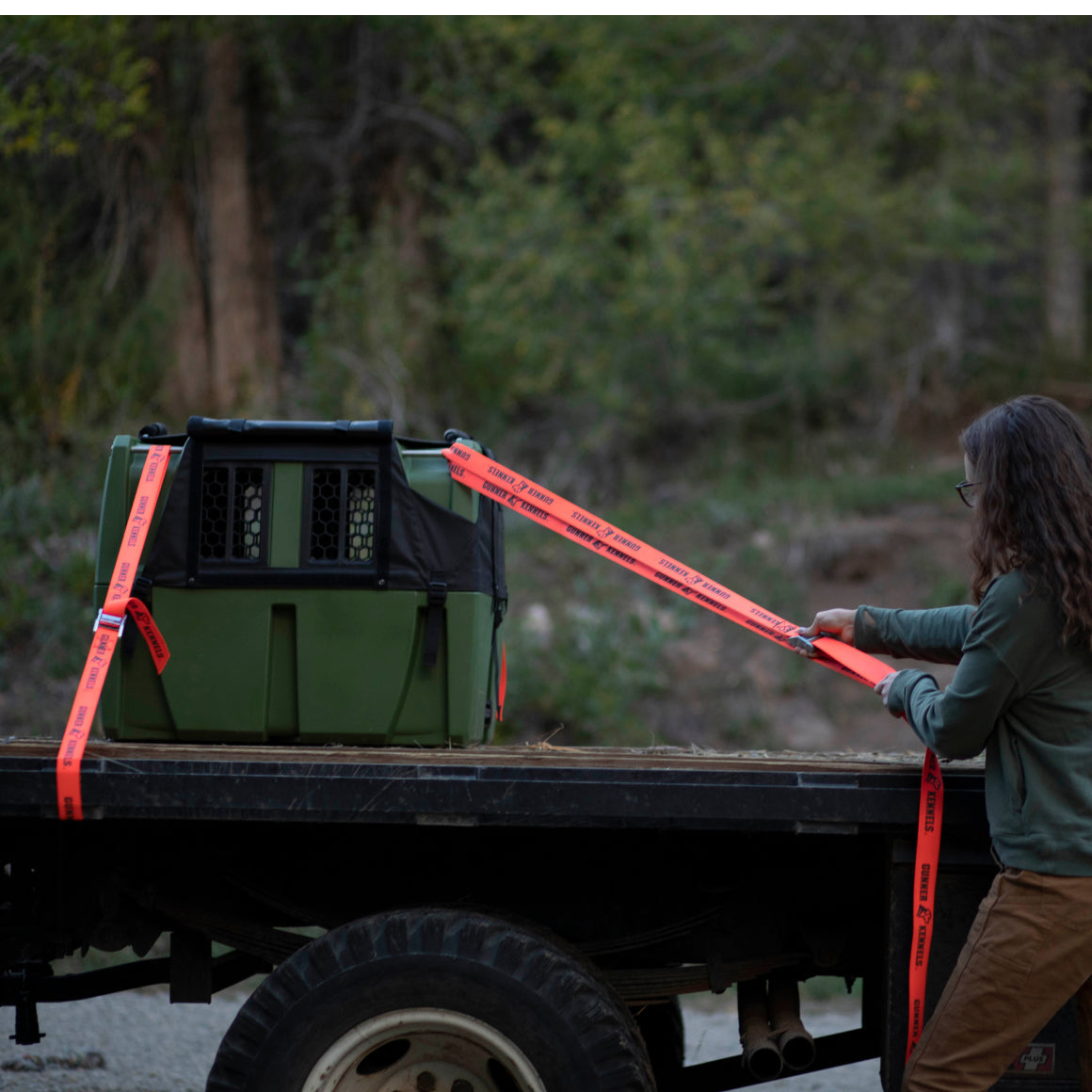 GUNNER tie-down straps are used to securely anchor your dog crate to your vehicle and are the only ones that we recommend for 5 Star Crash Test certified safety.
